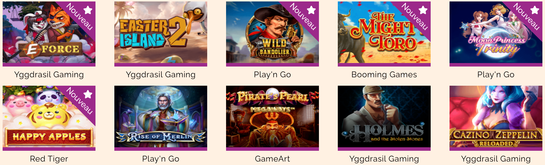 Arlequin Casino s'associe à certains des meilleurs fournisseurs de logiciels de l'industrie de l'iGaming pour vous offrir la meilleure expérience de jeu. Chaque fournisseur de contenu apporte un style et une expertise uniques, garantissant aux joueurs une session de jeu mémorable. Parmi les fournisseurs de logiciels d'Arlequin Casino figurent Evolution Gaming, Thunderkick, Yggdrasil Gaming, Play'n GO et Betsoft.