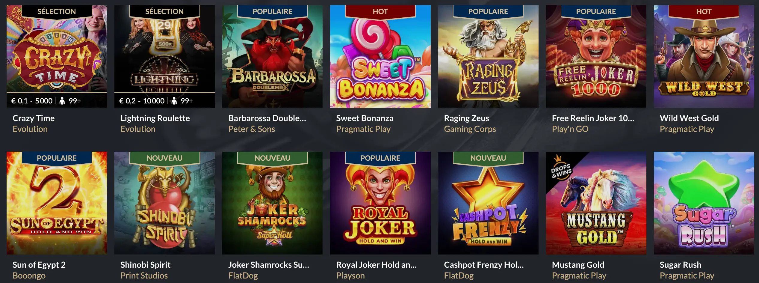Le site propose également des jeux de casino standard avec un croupier en direct. Les jeux Lightning, Party sont tous accessibles sur Tortuga, en plus des jeux de roulette propres à Evolution Gaming. Vous pouvez choisir parmi une grande variété de jeux de table en direct, notamment Golden Wealth Baccarat, Lightning Baccarat, 2 Hand Casino Hold'em, Extreme Texas Hold'em, 2 Pair Plus, Caribbean Stud Poker, Lightning Dice, Craps Live, Super Sic Bo, Triple Card Poker, Caribbean Stud Poker, 2 Pair Plus, Lightning Dice, et bien d'autres encore. Enfin, une bibliothèque de jeux en direct est un élément important de toute division de jeux. La liste actuelle des jeux vidéo les plus joués comprend les favoris des fans, notamment Crazy Time, Mega Ball, Gonzo's Search for Treasure, Cash or Crash et Dream Catcher.